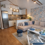 Wnętrze jest w pełni umeblowane i wyposażone w nowe meble oraz niezbędny sprzęt AGD. Kuchnia wykonana została w zabudowie na wymiar i jest w pełni przygotowana do codziennego użytkowania. Całość utrzymana jest w spójnej, eleganckiej i delikatnej stylistyce, która tworzy przyjemną i komfortową przestrzeń do życia.