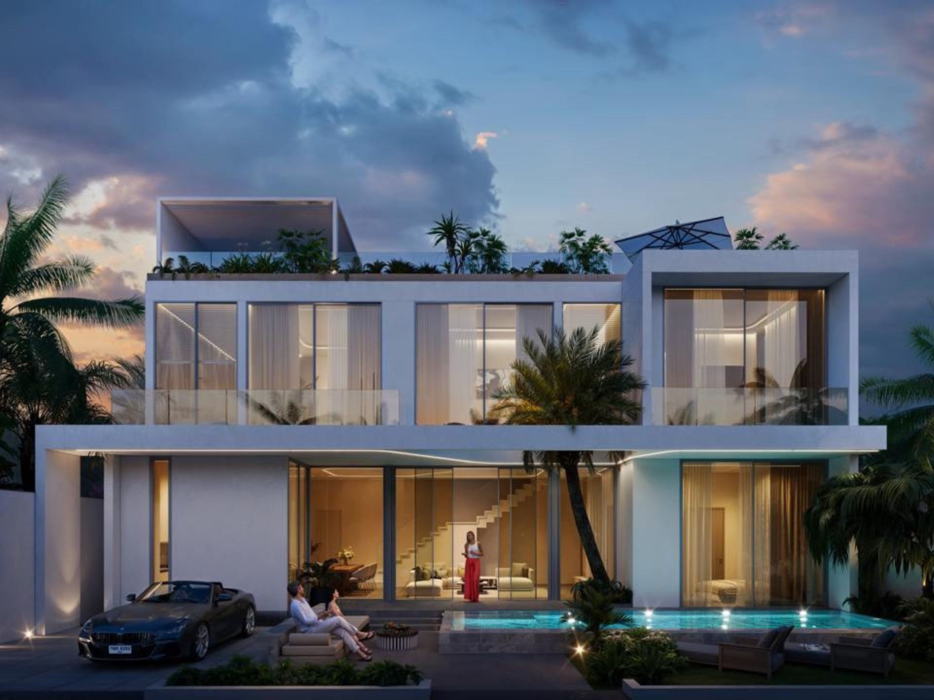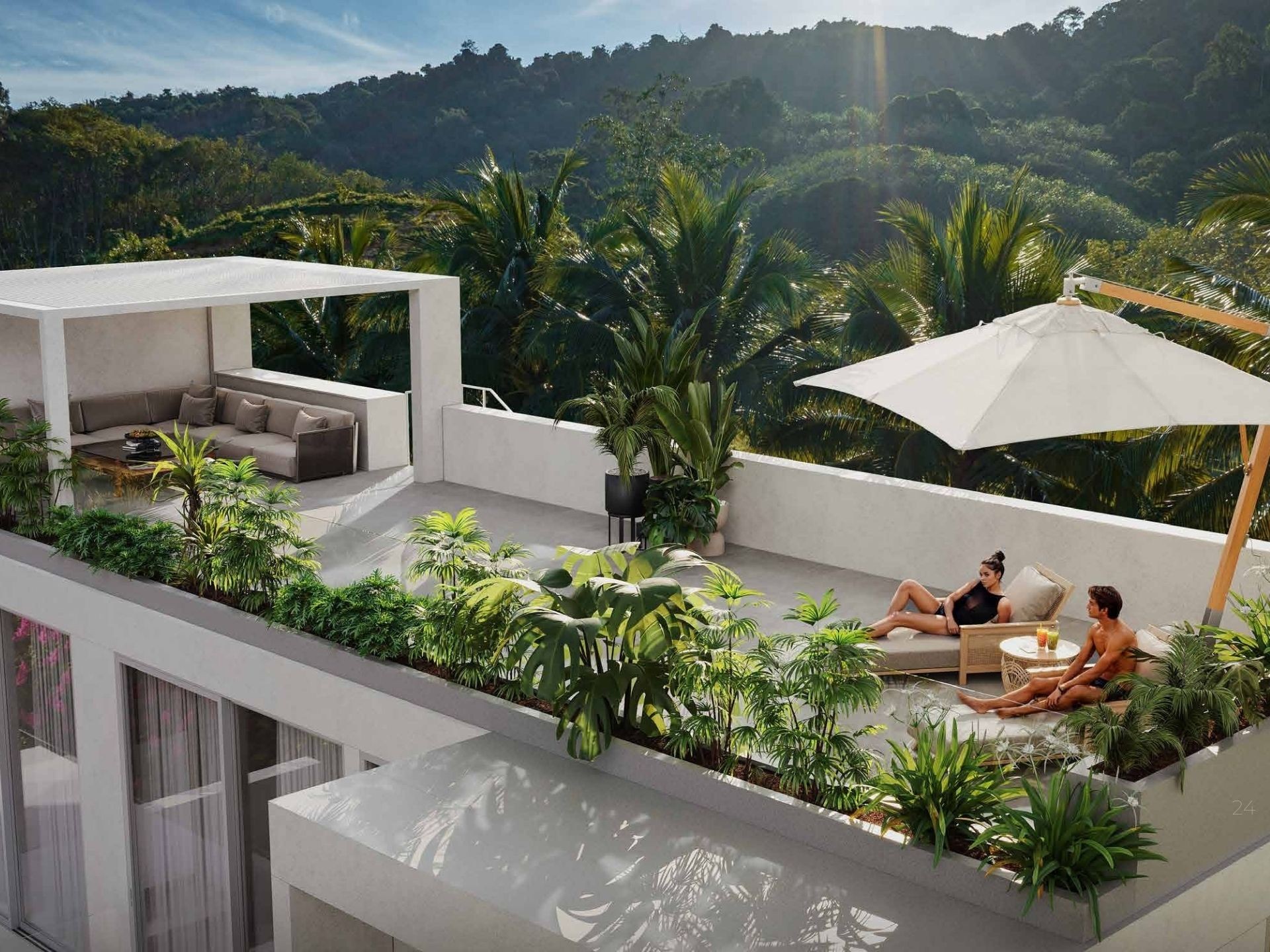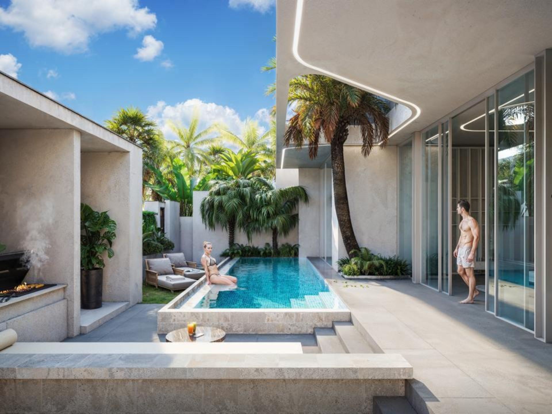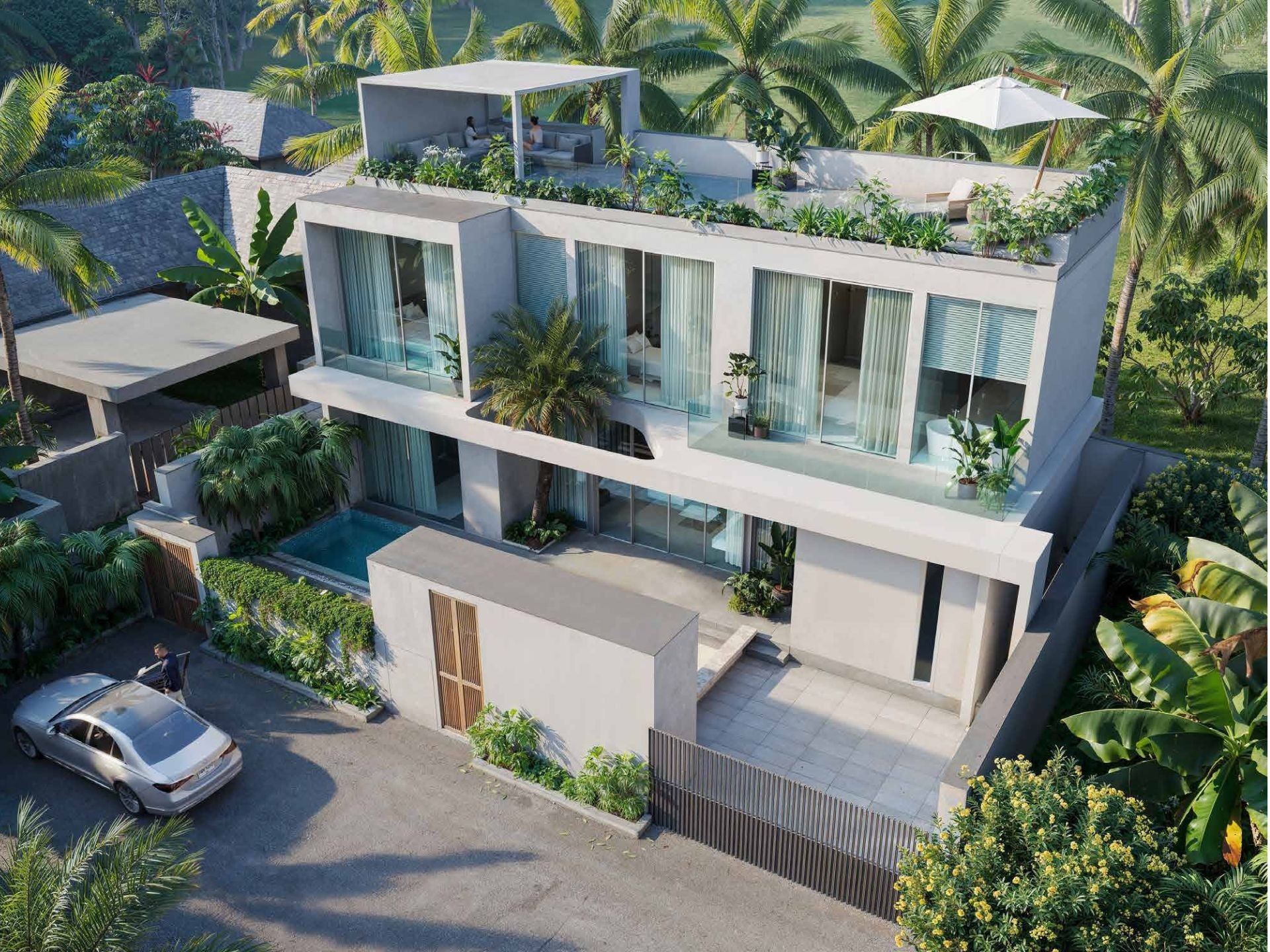 - Profesjonalnie zaprojektowany krajobraz z tropikalnymi roślinami